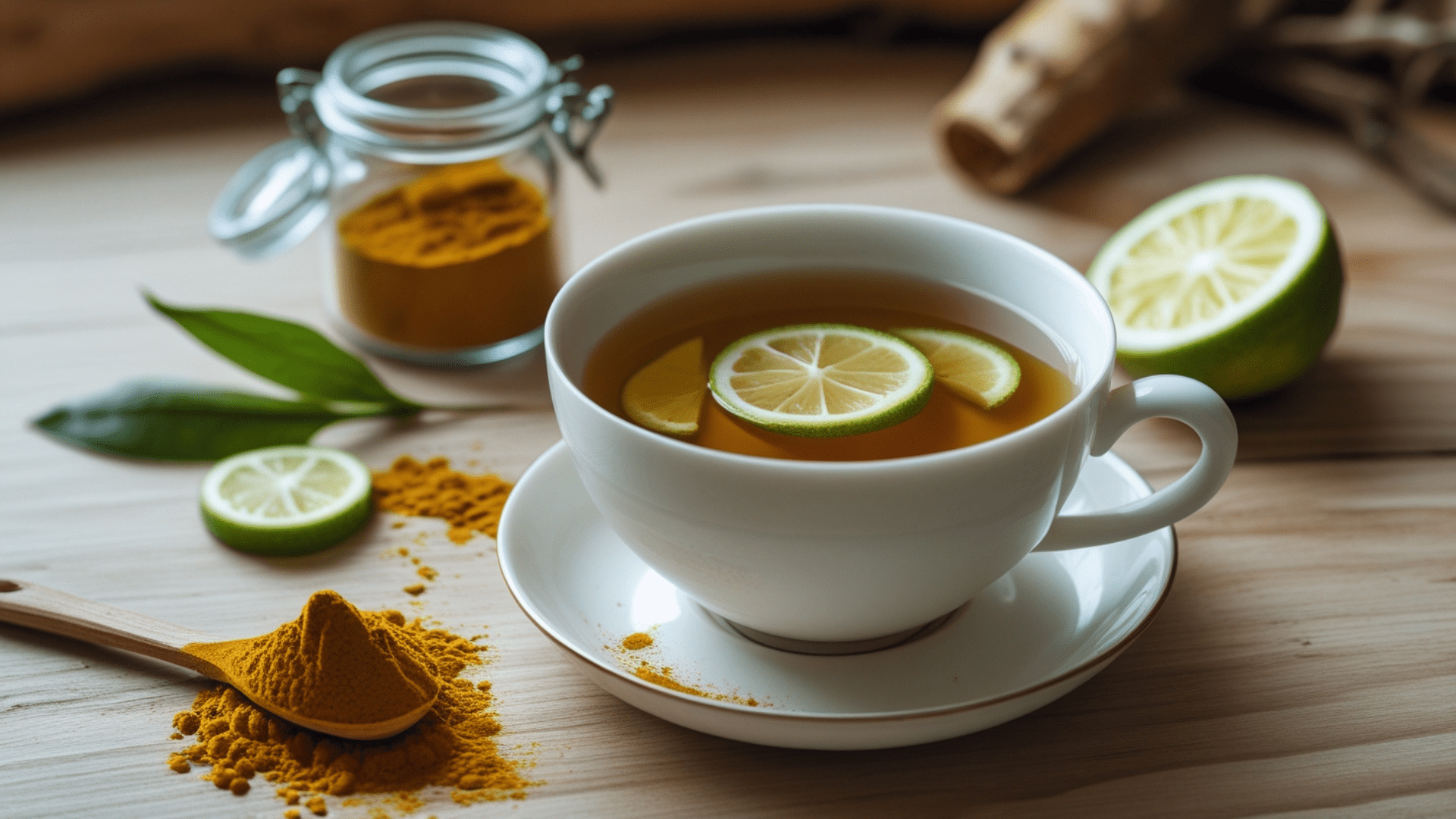 A cúrcuma, com sua curcumina, acelera o metabolismo, aumenta o gasto energético e queima gordura. O limão reduz o desejo por doces e tem efeito diurético, eliminando líquidos.