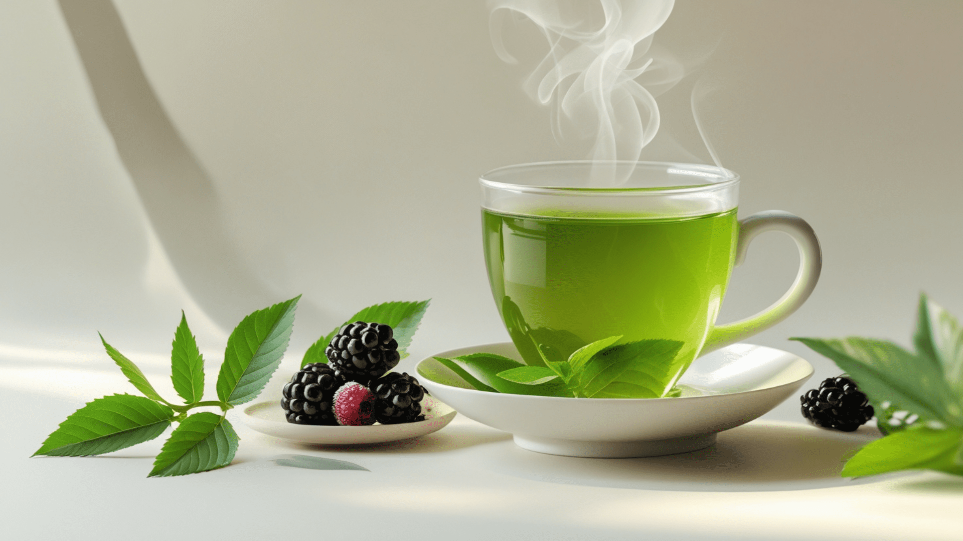 O chá verde com amora contém propriedades diuréticas e termogênicas, ajudando a desinchar a barriga e acelerar o metabolismo, facilitando a queima de calorias e promovendo o emagrecimento.
